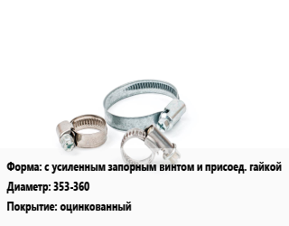 Хомут с усиленным запорным винтом и присоед. гайкой D=353-360 оцинкованный, упаковка цена от 219.5 ₽ / шт, где купить, условия доставки в Екатеринбурге и Свердловской области