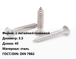 Саморез с потайной головкой D=3.5 L=45 сталь ГОСТ: DIN 7982, упаковка 1000 шт цена от 387.56 ₽ / кг, где купить, условия доставки в Екатеринбурге и Свердловской области