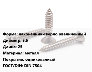 Саморез наконечник-сверло увеличенный D=5.5 L=25 металл оцинкованный ГОСТ: DIN 7504