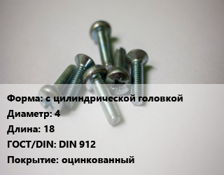 Винт с цилиндрической головкой 4х18 DIN 912 оцинкованный, 8.8, кг цена По запросу где купить, условия доставки в Екатеринбурге и Свердловской области
